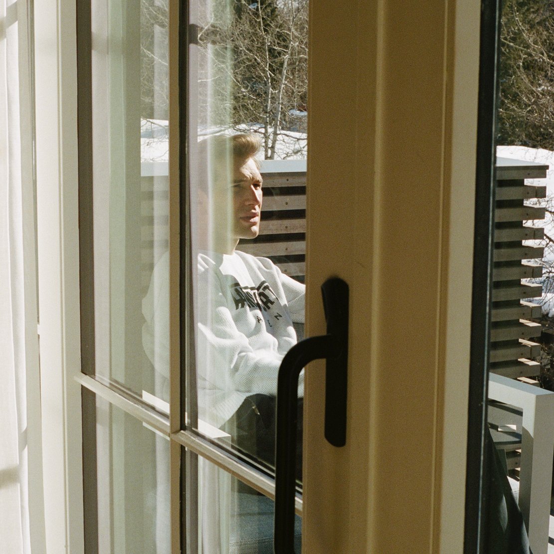 We’re in the elevator when an athletically- built man enters chatting on the phone about the “speed of the course.” On a hunch we ask, “Competing in X Games?”